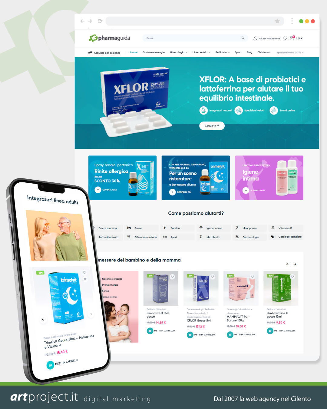 Pharmaguida srl, azienda italiana di riferimento nella produzione di integratori alimentari dedicati alla gravidanza, all'infanzia e al supporto delle difese immunitarie, ha scelto l’agenzia digitale ArtProject.it di Vallo della Lucania per il rinnovo ed il potenziamento della propria piattaforma di vendita Ecommerce e della presenza online.
